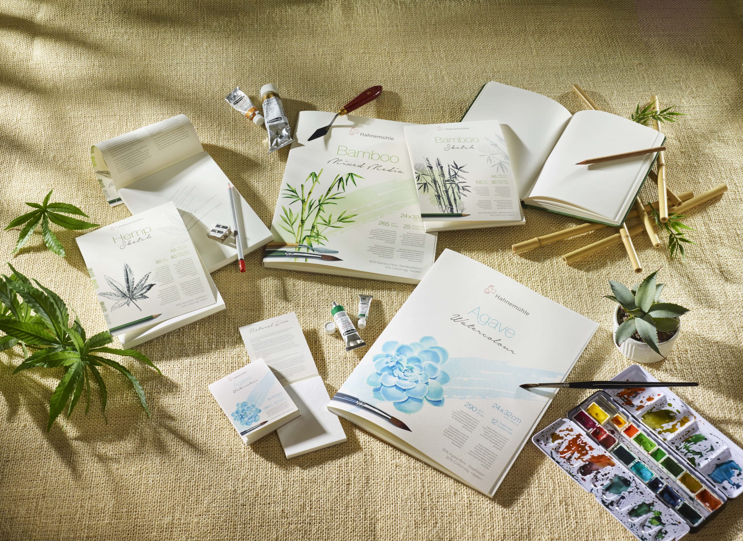 Agave akvarelpapir er fra Hahnemühles nye serie, Nautral Line, hvor der er anvendt 70% agave og 30% bomuld. Papiret er udviklet til den forbruger, der gerne vil støtte miljø og bæredygtighed.