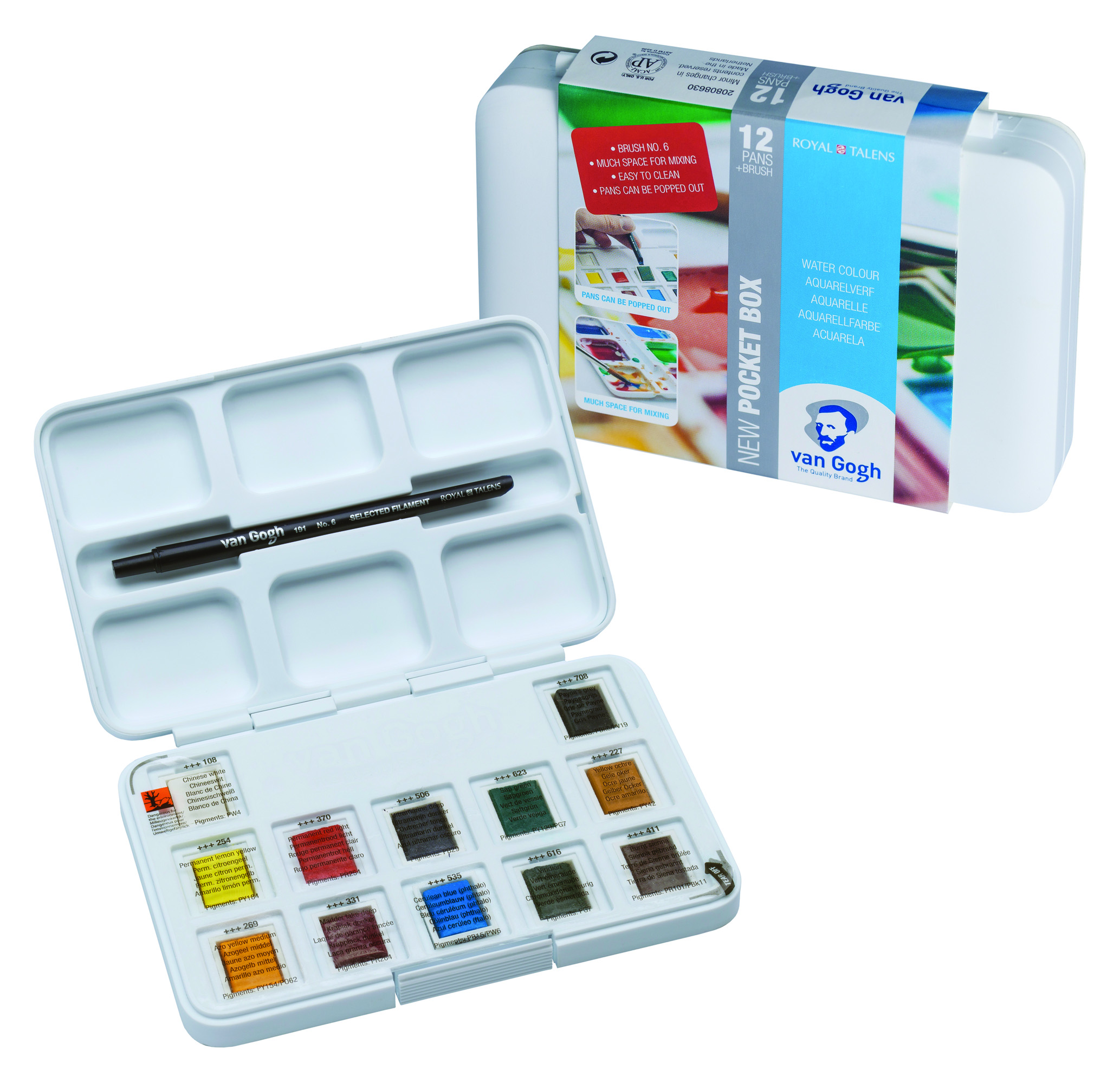 2. Akvarelsæt med 12 basisfarver af mærket van Gogh. Sættet indeholder lille pensel.