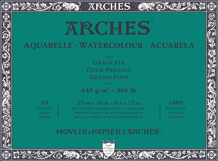 ARCHES® er den eneste papirfabrik i verden, der gelatine tørrer sit akvarelpapir “til kernen”.  Dette betyder, at farverne bevarer deres glans og gennemsigtighed, samtidig med at det forhindrer farverne i at trænge ind i papiret. Akvarelpapiret har en exeptionel styrke og modstandskraft overfor udviskning, der gør det let at fjerne farve igen, uden at ødelægge papiret.