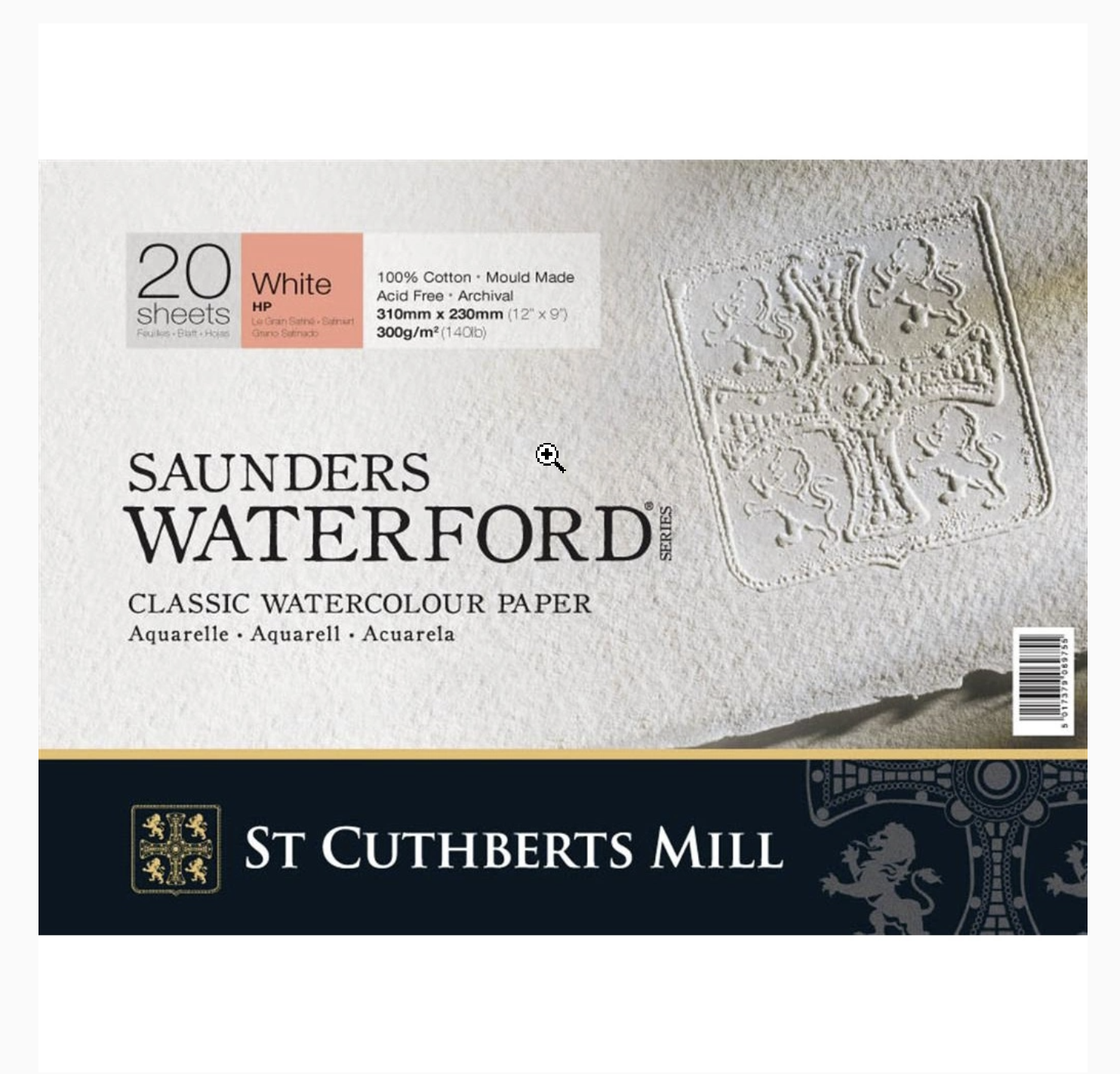 Det er akvarelpapir af overlegen kvalitet og har Royal Watercolor Society’s godkendelse. Fremstillet af 100 % bomuld, papirfremstillingsmateriale af højeste kvalitet, til høje arkivstandarder.