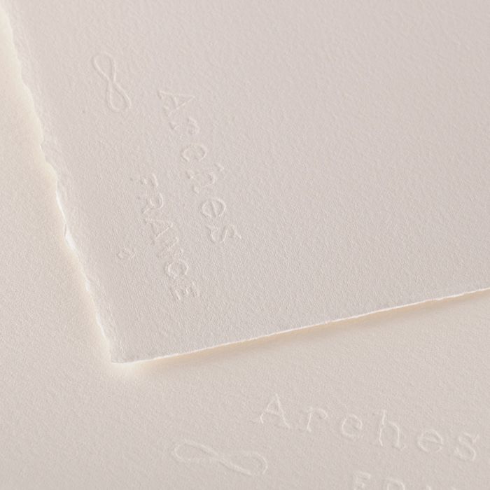 Arches løse ark, 300g akvarelpapir er et elegant kvalitetspapir. Det mould made og arkene har 2 rå kanter og er præget med vandmærke.