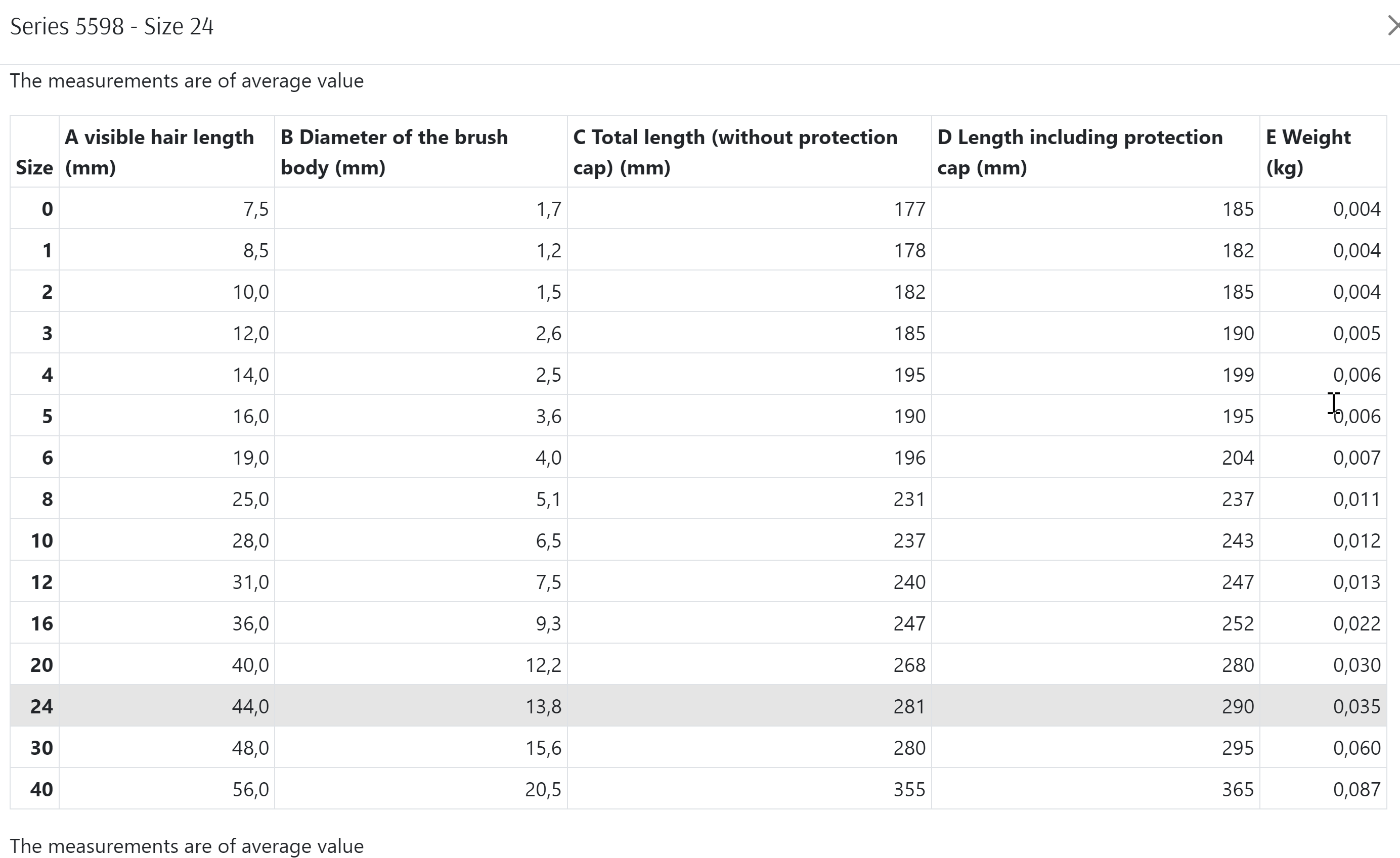 Se penseldetaljer under fotos og vælg størrelse i dropdown boksen.