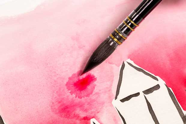 • Lad aldrig din pensel tørre med hårene opad, så samler der sig maling i bunden og det får penslens hår til at skille sig og stritte i alle retninger. Penslen skal tørre liggende eller hængende med hårerne nedad.