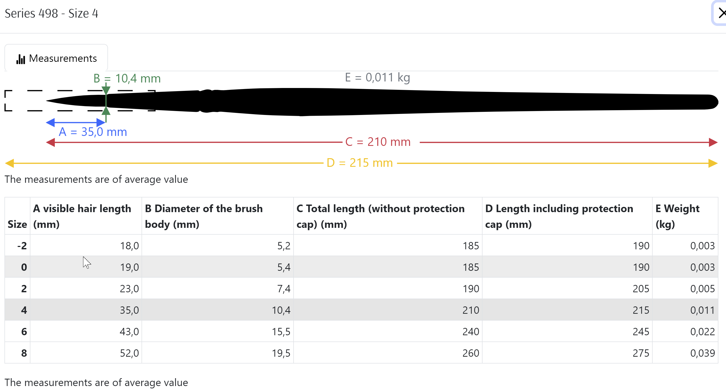 Se penseldetaljer under fotos og vælg størrelse i dropdown boksen.