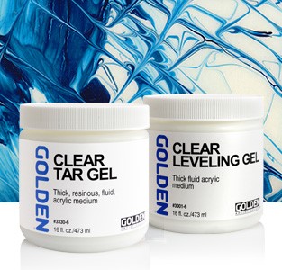Golden Clear Tar Gel er en sej meget tyndtflydende gel. Den er særdeles velegnet til at skabe helt fine tynde streger, fordi den ligesom kan hænge i luften og flyde i en konstant lang sej tråd fra en paletkniv.