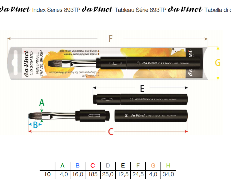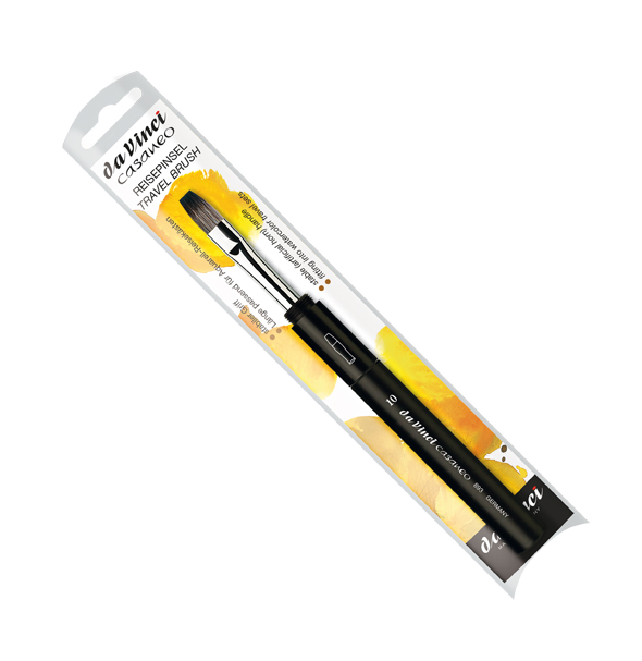 Casaneo er en rejse-akvarelpensel fra da vinci med syntetiske hår. Denne pocket-brush har en flad form. En rigtig god holdbar og slidstærk pensel, som er karakteriseret ved at have: