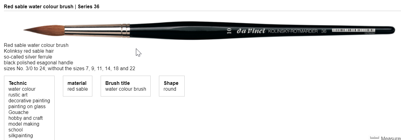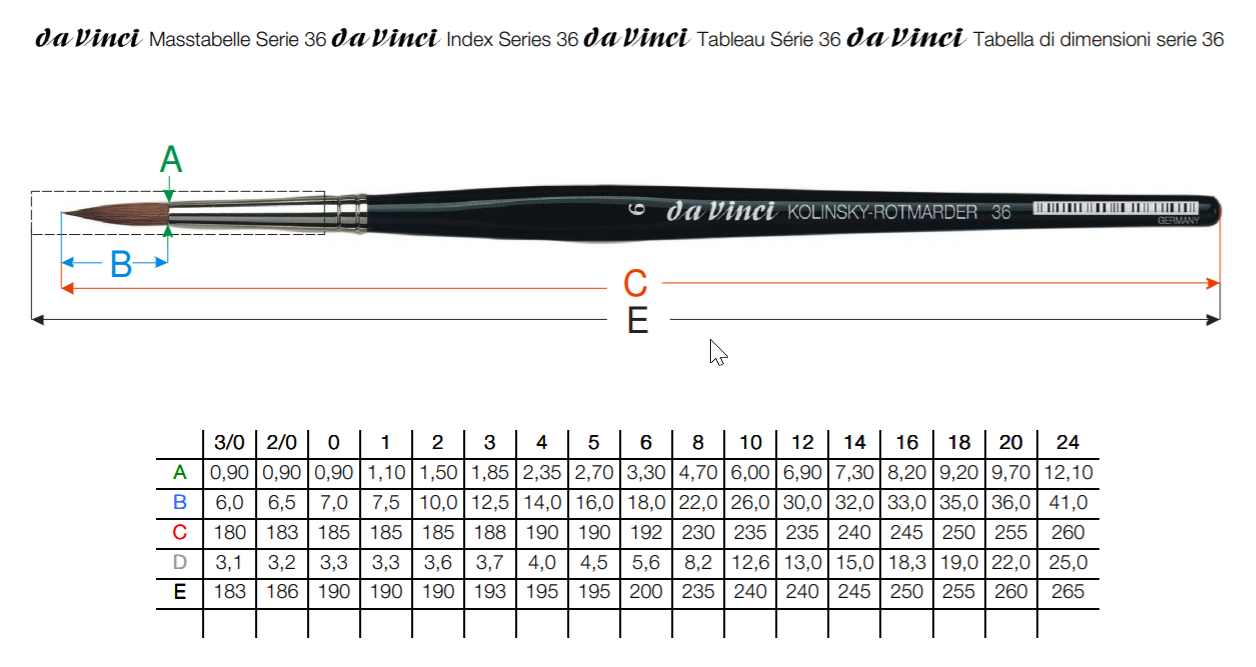 Kolinsky Red Sable fra da vinci er en ægte mårhårspensel. Denne pensel er spids/rund.