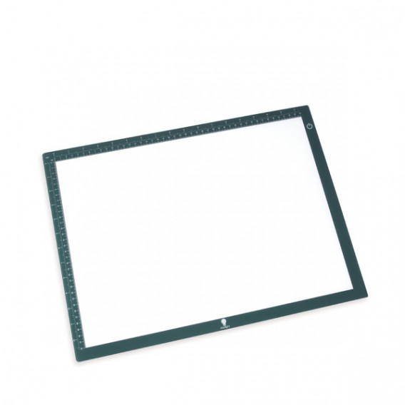 Dette LED lysbord giver et jævnt fordelt lys fra kant til kant. Lysstyrken kan justeres efter behov. Lysbordet har lavt energiniveau og udvikler meget lidt varme. Viser cm- og tommemål på kanterne.