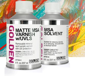 GOLDEN MSA Varnish kan anvendes til akryl-, olie- og alkydmaling.  MSA fernis er baseret på mineralsk terpentin og giver en hårdere overflade end vandbaseret fernis, hvilket er en bedre og mere uigennemtrængelig beskyttelse. Kan fjernes med mineralsk terpentin når den er tør.