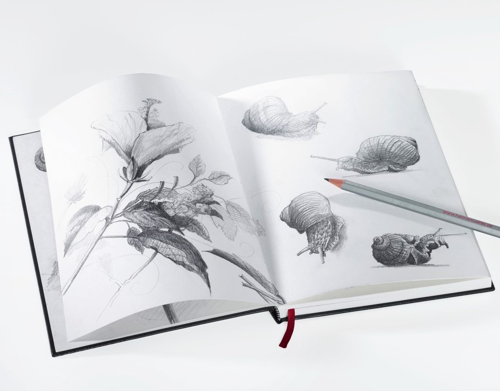 Papirets overgiver gør at skitsebogen både kan anvendes til en arkitekts fine tegningerr, samt til mere hurtig og farverig tegning.