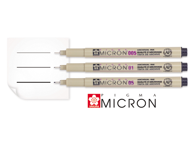 Pigma Micron indeholder ink, der er lysægte og vandfast. De er gode til bevaringsværdig kunst og værker, da de ikke falmer med tiden.