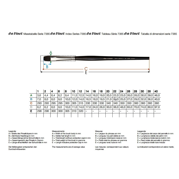 Hvis du ønsker at prøve en TOP Akryl da vinci pensel, kan du med fordel købe det komplette sæt, som indeholder alle 3 penseltyper. Så sparer du ca. 10% i forhold til at købe penslerne enkeltvis.