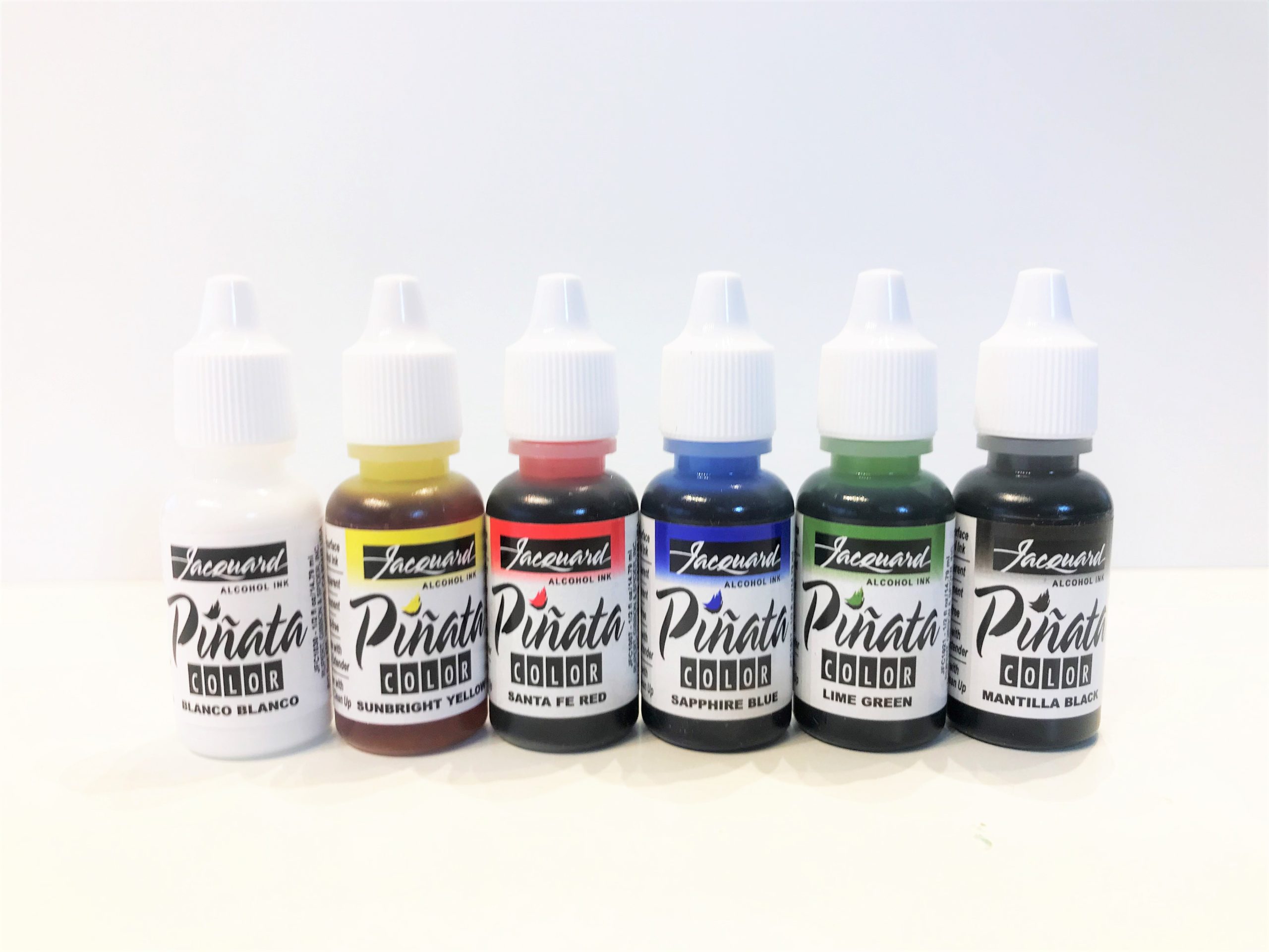• 7 Pinata alcohol ink, White, Black, Golden Yellow, Santa Fe Red, Saphire Blue, Rainforrest Green, Rich Gold.