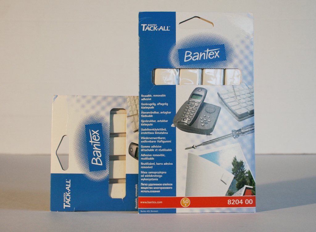Tack-all er en genbrugbar og aftagelig hvid klæbemasse, som du med fordel kan anvende når du ønsker dine malerier hænger pænt og lige på en udstilling.