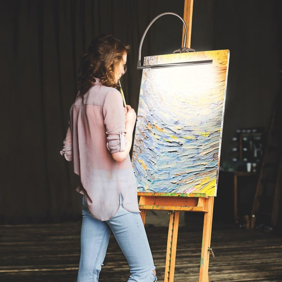 Denne professionelle kunstner- og tegnelampe fra Daylight er både elegant og effektiv. Den giver dig super godt arbejdslys døgnet rundt. Med 3000 Lux og 3 indstillinger for lysstyrke får du lige det lys du har behov for. Den monteres let på staffeli, tegneboard eller arbejdsbord.