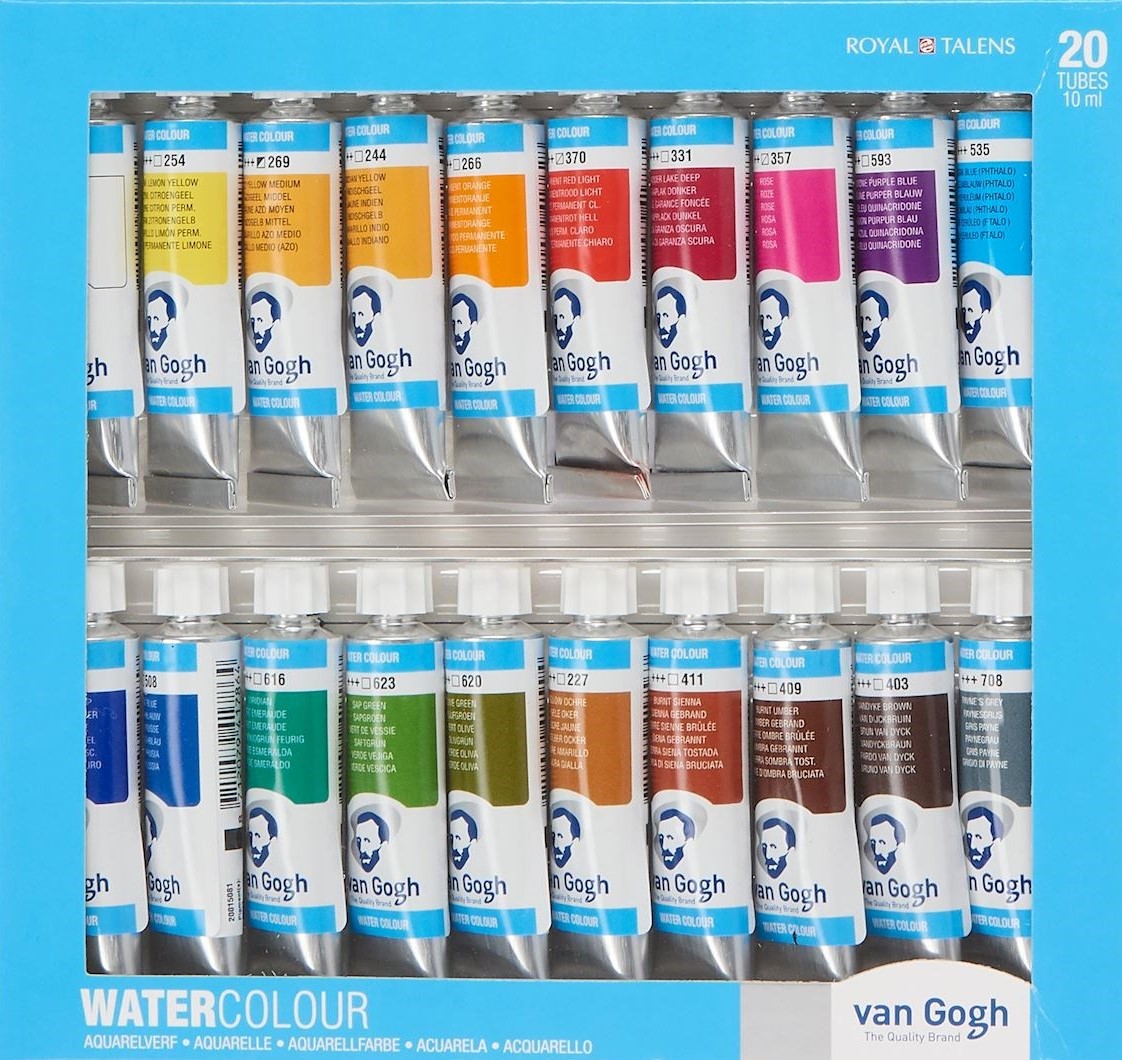 Van Gogh Akvarel sættet indeholder 20 smukke akvarel i 10 ml tuber.